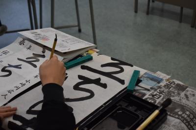 おおぞら学級では、書き初めの練習に取り組んでいました。2年生は「新たな目標」、3年生は「旅立ちの春」です。昨日の書き初めも見せてもらいましたが、今日のものは二人とも格段に上達していました。自分の課題をしっかりと意識して取り組んでいる証拠ですね。