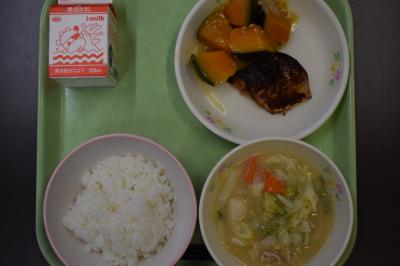 ということで、今日の給食は「冬至献立」メニュー、ごはん、さばのゆず麹焼き、かほちゃのそぼろ煮、粕汁でした。寒さに負けずに元気に過ごすために、昔の人が発見した冬至の過ごし方が、今でも大切にされ伝統的な習慣になっています。冬至にはゆずを入れたお風呂(ゆず湯)に入るといいと言われています。ゆず湯は、体をぽかぽか温めてくれるので、風邪などを引きにくくしてくれます。また、冬至にはかぼちゃを食べるといいと言われています。かぼちゃは、栄養があるので、丈夫な体づくりにとてもいい野菜ですね。