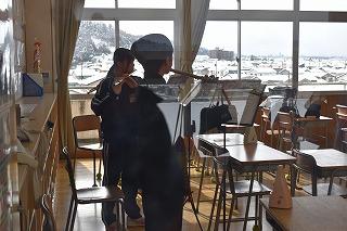 吹奏楽部は、明日24日(日)に開催される石川県アンサンブルコンテストのフルート三重奏に出場する3名が、最後の調整に励んでいました。明日の演奏を楽しみにしています。3人のフルートの調べをホールいっぱいに響かせてください。