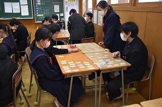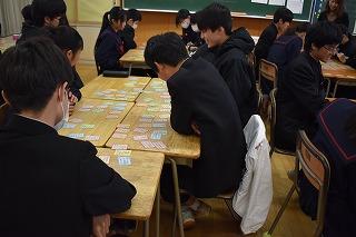 2年生国語科の授業。今日は百人一首に興じていました。生徒の皆さんの様子を見ながら、幼い頃、年末から年明けのこの時期に、家族や帰省した親類らと一緒に、百人一首ならぬ「坊主めくり」をして楽しんだことを思い出しました。