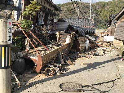 1月1日に新年のホームページを更新し、能登の実家でくつろいでいた時でした。16時6分過ぎにスマホの緊急地震速報が鳴りました。数秒間の揺れが続き、もうそろそろ揺れも収まったかなと思ったときに、ものすごい強い揺れが十数秒間続きました。こたつの布団を頭に被るなどして身をかがめ、揺れが収まった瞬間に、家中に散乱したものをかき分け外へ。津波警報が鳴り響く中、急いで車に乗り込み高台にある避難所へ向かい、そこで一夜を明かしました。翌2日に自宅周辺の変わり果てた様子を見て言葉もありませんでした。