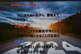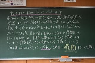 1年生は、もうすぐ「先輩」となります。中堅学年になる自覚を持ち、ひとりひとりが新入生のよき手本となってくれることを期待しています。