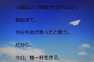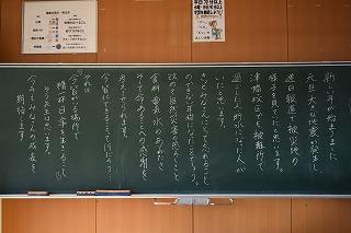 震災の影響で、本校生徒の皆さんの中にも、依然として不自由な生活を強いられている人もいます。余震等で当時の状況の記憶がよみがえり、少し不安な気持ちになった人もいます。また、被災地域においては少しずつ学校再開の知らせが入ってきていますが、他の地域に一時避難し、学校生活を再開している多くの仲間も含めて、不安で不自由な生活が今後も続きます。私たちは、当たり前の日常を過ごせることに感謝して、学校生活を大切に送っていきましょうね。