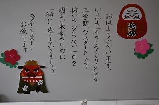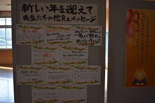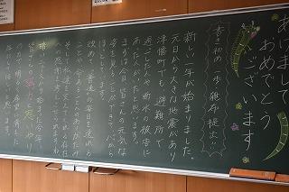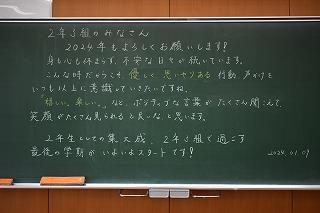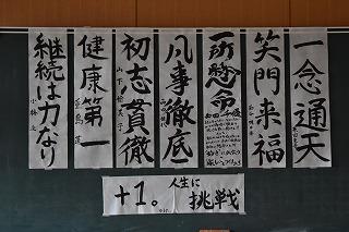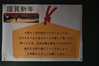 新年の書き初めが各クラスに掲示されています。力強い筆使いに感心します。それぞれの「旅立ちの春」に向けて、「新たな目標」を胸に、その目標が達成できるよう、具体的な行動を「不言実行」していきましょうね。