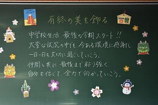 3年生は、今月から推薦入試がはじまります。また、2月1日には私立高校入試が行われます。共に支えあいながら、最後まで徹底的に勉強をやり抜き、試験当日を迎えてください。