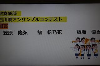 うれしい報告です。昨日28日(日)に行われた、「第8回いしかわ吹奏楽コンクール新人戦【中学校の部】」で、本校吹奏楽部が金賞県代表を獲得し、3月28日にさいたま市で開かれる第12回首都圏学校交歓演奏会に出場することが決まりました。本当におめでとうございます。同じく出場する3中学校とともに、県代表として心がひとつになった美しいハーモニーを、ホールに響かせてきてください。応援しています。