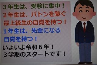 令和6年も、「安全・安心な学びの場」「生徒も先生も幸せな学校」を目指して、共に力を合わせていきましょう。