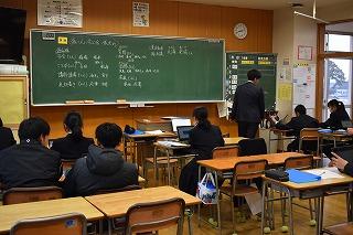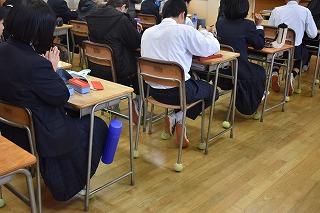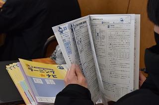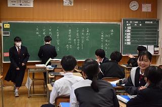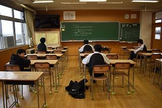 3年生、5限目のあるクラスの授業風景。英語の入試対策問題に取り組んでいました。ドアをそっと開けて教室に入ると、ピリッとした緊張感が教室いっぱいに広がっていました。推薦入試を終えて合格内定をもらっている人もいますが、みんなで共に支え合い、高めあいながら、2月1日の私立一般入試を迎えようとする気持ちが伝わってきました。