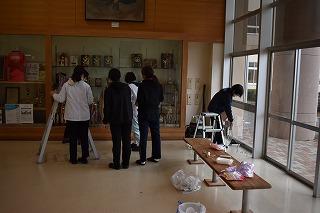 震災の影響で、今週一週間は給食が停止です。調理師、調理員の皆さんが、普段の清掃ではなかなか行き届かないところをきれいにしてくださっています。校内を回っているときにはちょうど、1階生徒玄関前ホールの章典棚を清掃、整理してくださっていました。昨日は、各階の手洗い場をきれいにしていただきました。本当にありがとうございます。今回の震災で、食のありがたさも改めて痛感しています。来週からは給食も再開予定です。調理師、調理員の皆さん、栄養教諭の田路先生、またよろしくお願いします。