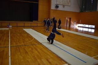 2年生保健体育科の授業。マット運動に取り組んでいます。今日は、次回の発表会に向けて、各自の技の最終調整に励んでいました。発表会では、各自が選択した3種類の技を披露します。倒立前転、ロンダート、側転、開脚前転・後転など、現段階でもきれいにできている人がたくさんいました。