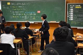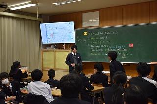 2年生英語科の授業。準備を進めていたおすすめの世界トップ3のプレゼン発表を行っていました。まずはグループ内での発表、その後、各グループから選出された代表者の発表と続きました。どの発表も聞きごたえのあるものばかりでした。紹介された世界遺産の中には、私も訪れたことがある場所があり、当時のことを少し思い出しました。