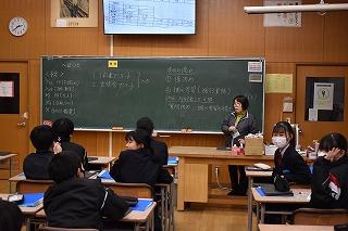 1年生、5限目総合的な学習の時間。今日は2月1日に予定されている「働く人に学ぶ会」のグループ分けと、昨年から取り組んでいるSDGs課題研究のまとめに取り組んでいました。「働く人に学ぶ会」では、8つの業種の方々に来校いただき、お話を伺います。とても楽しみにしている様子です。SDGs課題研究は、各グループのまとめの内容を少し見ただけですが、しっかりとまとめられている印象を受けました。完成したものを拝見するのが楽しみです。