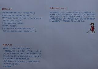 「1、2年生は、職場体験、職業調べを通して、将来について考えている。どんな人になりたいのか、今の自分を振り返り、より素敵な人になるための努力をしてほしい。目の前にあるやるべきことから目をそらさず、ひとつひとつやっていってほしい」ということを伝えました。