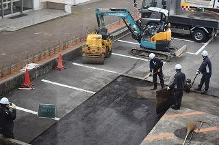 能登半島地震の影響で、一部陥没していた給食調理室前の駐車場の補修工事が行われました。しばらくの間、通行や駐車で不便をおかけしました。