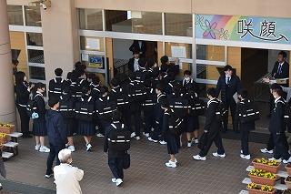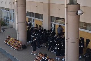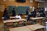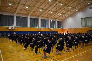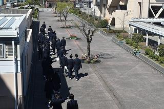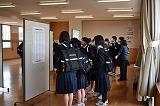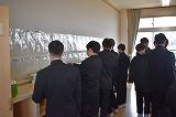 1年生は、13時から13時30分の間に登校し、生徒玄関前で自分のクラスを確認し、教室に入ります。机・椅子の調整、配付物の確認等を行い、体育館に移動して入学式の流れを確認します。