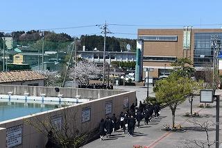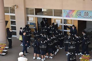 2、3年生は、登校後教室に入り、当面の日程の確認、教科書配付等の学活を行い、新クラス発表となります。自分のクラス・番号を確認、下足を移動して下校となります。