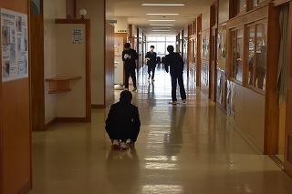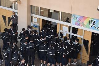 〈初登校、生徒玄関前で自分のクラスを確認して各教室へ〉