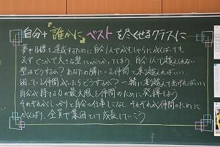 『5日のクラス発表、そして今日と生徒の皆さんの顔を見ることができ、本当にうれしく思います。こうして皆さんの顔を見渡すと、気のせいでしょうか、少したくましくなった感じを受けます。とても頼もしく感じます。