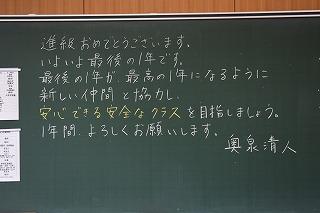 一人一人がクラスにとって欠かすことのできない大切な存在です。「あなたが大切であり必要」なんです。一人一人の存在を大切にしながら、新たな仲間と協力、助け合い、高め合いながら、担任、副担任の先生、学年の先生とともに、素敵なクラス、学年にしていってください。