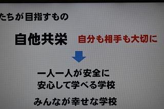 私たちが目指すものは、「自他共栄」です。自分も相手も大切に、一人一人が安全に安心して学べる学校、生徒の皆さんも、教職員も、地域の人たちも幸せな学校です。