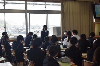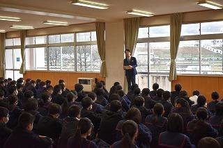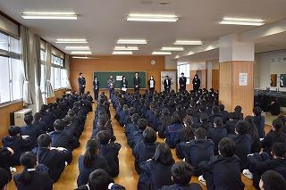 さらにこの津幡中学校が、素敵で魅力ある学校になるためには、生徒の皆さん一人一人の存在が大切であり、必要です。力を貸してください。そして、みんなで高め合い、助け合い、支え合いながら、歩みを進めていきましょう。』