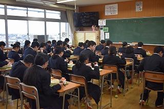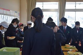 生徒の皆さんの健康で丈夫な体をつくるために、栄養バランスを考え、調理師、調理員の皆さんが、毎日心を込めて調理してくださいます。温かくて美味しくて栄養満点の給食を食べることができることに感謝してください。調理師、調理員の皆さん、栄養職員の山田先生、今年もよろしくお願いします。