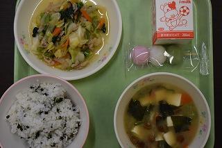 今日のメニューは、ごはん、鶏肉のスタミナ焼き、みそ炒め、あさりとみつばの春うどんでした。今日のメニューはどれも好きな物ばかりで大満足でした。調理師、調理員の皆さん、栄養職員の山田先生、今週もありがとうございました。来週もよろしくお願いします。