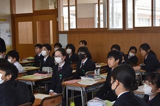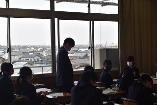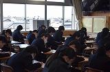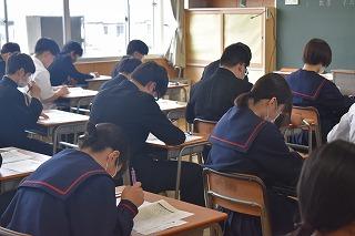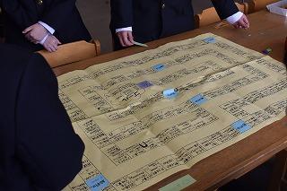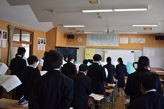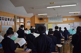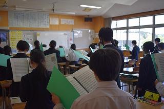 4限目冒頭、校歌の歌声に誘われて音楽室へ。1年生が歌っていました。津幡中学校の校歌を実際に歌うのは、これが最初くらいかな? 授業の終わりころにもう一度音楽室へ。先生と一緒に今日の歌唱のポイントを確認し、練習した成果が早くも表れていました。きれいな歌声でした。学校の儀式や節目の集会などで、生徒の皆さん、そして教職員の校歌の歌声が響く津幡中学校でありたいですね。