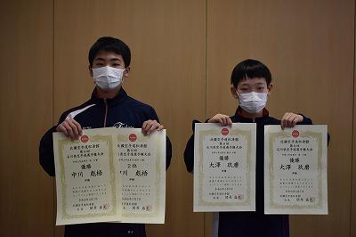 団体戦に続き行われた個人戦においても、選手たちは大いに奮闘しました。男子では、田辺琉生さん(3年)と河智天晴さん(3年)が、ともにベスト4に進出、準決勝で激突となりました。今回は河智さんに軍配が上がりましたが、これからも互いに切磋琢磨し実力を高めていってください。河智さんは決勝で敗れましたが堂々の2位、田辺さんも3位です。また、小泉洋輝さん(2年)もベスト8まで勝ち上がる健闘を見せてくれました。その他の個人戦に出場したメンバーも懸命なプレーぶりでした。