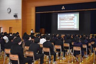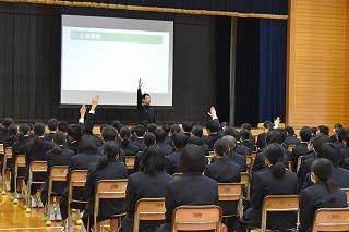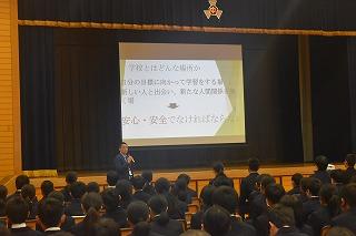 続いて、学校安全担当の星場先生から、これから何回か実施する避難訓練における確認事項について話がありました。いざというときに、指示に従い、慌てず自らあるいは他者の命を守る行動を一人一人が取れることが大切ですね。