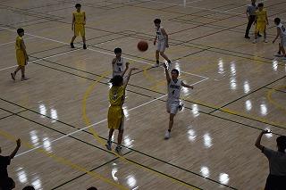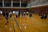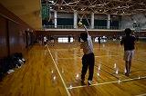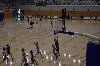 男子チームは、宇ノ気中学校との対戦でした。第1セット、全体に動きに固さが見られる様子でしたが、常に先行する形で第1セットを取りました。第2セットは、選手たちの固さも取れ、本来のプレーが見られるようになり、危なげなく奪い、ストレート勝ちを収めました。