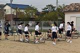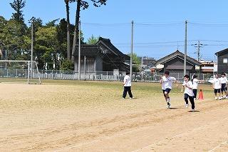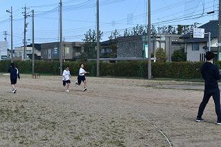 1年生保健体育科の授業。グランドで、50m走の記録測定を行っていました。懸命にゴールに向かって走る姿に、思わず「がんばれ」と声が出てしまいました。自己記録更新を目指してダッシュです。