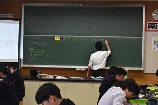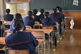 1年生保健体育科の授業。現在体力テストが行われています。今日は体育館で、ハンドボール投げの記録測定を行っていました。女子の中にもきれいなフォームで、いい記録を出す人もいて感心しました。この時期のハンドボール投げの様子を見たり、実際にハンドボールに触ったりするとハンドボール部の顧問として、部員たちと一緒に汗を流したことを思い出します。