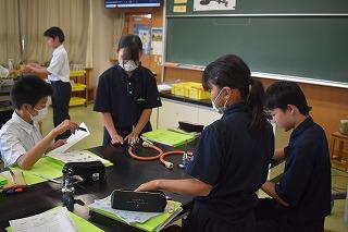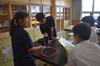 1年生理科の授業。ガスバーナーの操作について、ペアによる確認チェックを行っていました。各場所の名称、操作順、操作確認など、10項目について、互いに確認し合いました。実験を、安全にかつ正確にスムーズに行うために、正しい器具操作は絶対に欠かすことはできませんね。