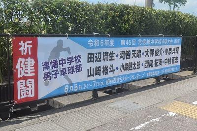 津幡町卓球協会・男子卓球部保護者会の皆様から頂いた応援幕が飾られています。本当にありがとうございます。