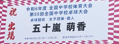 また、全国中学校体育大会【卓球競技女子】に、地域クラブ(川北クラブ)で活動している五十嵐萌香さん(3年)が、団体戦及び個人戦に出場します。大会での健闘を祈ります。