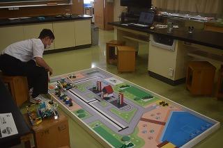 競技カテゴリは4つに分かれていて、生徒たちが出場したのは、「ロボミッション」カテゴリです。この競技では、その年のテーマに合わせて設定されるミッションが約2m×1mの競技コート内で与えられ、選手たちはそのミッションを攻略する自律型ロボットを製作し、ミッションをクリアしたポイントとそのスピードを競います。選手たちにはミッションをクリアするためのロボットの機構や制御プログラムの開発技術が求められ、また、当日発表されるエクストラチャレンジに対応し、ロボットの制御プログラムを早く正確に組み替えることも要求されます。午前2回、午後2回、計4回の試技で順位を競います。私の都合で、午前2回の試技しか観戦することができませんでしたが、全国から集まった精鋭たちに混じり、会場で奮闘する3人の姿を見ることができてうれしかったです。