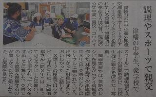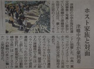 一行は、19日にオーストラリアに向け日本を出発、20日から24日までの5日間、ホームステイ先に滞在しながら、オーストラリア・ノースリッチモンドにある公立中高一貫校「コロ・ハイスクール」での語学研修や授業体験、文化交流などを行いました。交流の様子は、北國新聞に連日掲載されていましたが、帰国した生徒の皆さんの表情は、どの顔も満足感でいっぱいの様子でした。英語でのコミュニケーションはもちろんのこと、他国の風習や文化などを実際に体験できたことは、大変大きな財産になったことと思います。この後、参加者はそれぞれ報告書を作成します。また、10月15日(火)には、津幡町役場にて報告会が行われます。