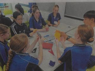 中学生海外派遣交流事業3日目の21日(水)、生徒の皆さんは、現地の公立中高一貫校「コロハイスクール」で、折り紙を教えたり、ソーラン節を披露したりして交流を深めました。