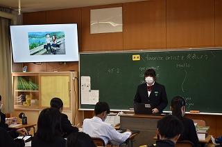 1年生英語科の授業。単元のまとめとして、"My favorite artist" の発表会を行っていました。数名の発表しか見ることができませんでしたが、自分のお気に入りのアーティストを、今までに習った表現等を使って、わかりやすく伝えることができていましたよ。発表を聞いていて、それにしても、私が知らない人が多くなったなあと感じました。