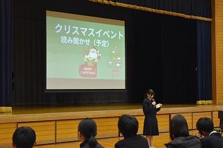 最後に、図書員会から11月のくじ引きイベントの報告と12月のクリスマスイベントについてのお知らせがありました。くじ引きイベントを通して、貸出し冊数が約50冊、前2週間よりも増加しました。