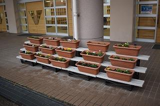 本日放課後に、環境委員会の生徒の皆さんによる花の植え替え作業が行われました。しばらくの間、少し寂しかった生徒玄関前が華やかになりました。玄関前の花々のように、冬の寒さに負けず、それぞれの場所で過ごしていきましょう。環境委員会皆さん、ありがとうございました。