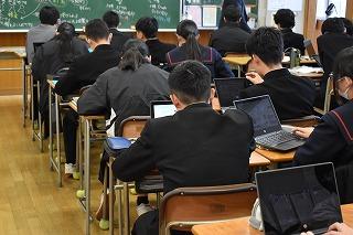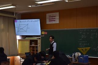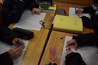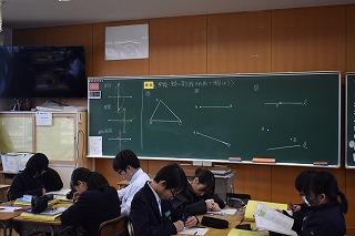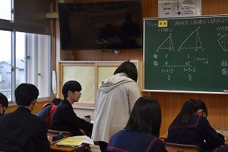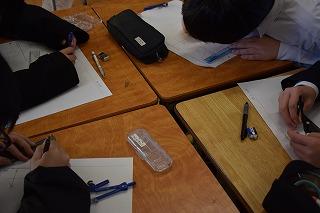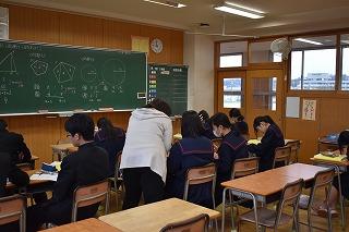 3年生数学科の授業。グループになり演習問題に取り組んでいました。