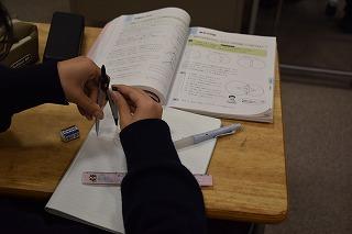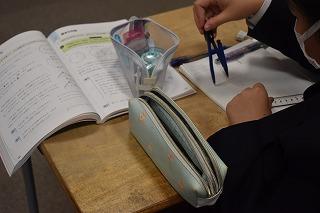 1年生数学科の授業。現在、垂直二等分線、角の二等分線、垂線などの基本の作図について、学習中のようです。多くの3年生が挑む公立高校入試の数学では、作図問題を出す都道府県が7割以上あるということです。しかし、学校の授業で作図を習うのは中1の平面図形。この時期にしっかりと基本をマスターしてくことが大切ですね。