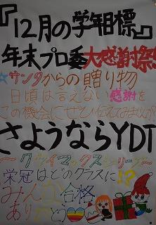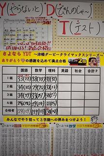 2年生が朝学習の時間を利用して実施してきた『Y(やれば・やらないと)D(できる・できんのじゃ)T(テスト)』。年明け1月からは、講座学習がスタートするということで、2学期をもって終了となります。テスト開始から今まで、すべてのテストに合格している人もいるのではないかと思います。継続は力なりですね。「クライマックスシリーズ」、栄冠はどのクラスに輝くのでしょうか。各クラスの力を互いに見せてくださいね。