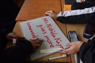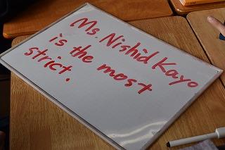 2年生英語科の授業。現在、比較表現(比較級・最上級)を学習中。今日は、①Who gives more homework? ②Who is more strict?などの質問に対し、選択肢(2年の先生方+アンジェロ)のうち、最も多い回答を予想し、比較表現を使って回答しました。アクティビティを楽しみながらも、どのグループも比較表現を適切に使いながら答えている様子に大変感心しました。ちなみに①、②の予想は、Ms.〇〇shida 〇〇yoが圧倒的でした。I think / she always cares about her students.(私は思います / 彼女はいつも生徒のことを気にしている・大切にしている)皆さんもきっとそう感じているに違いありません。
