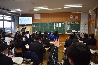 授業担当は主幹教諭の田中先生。授業はもちろんのこと、より素敵で魅力ある津幡中学校を創っていくための学校運営の中心の一人として、日々力を貸していただいています。ありがとうございます。