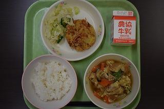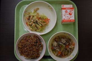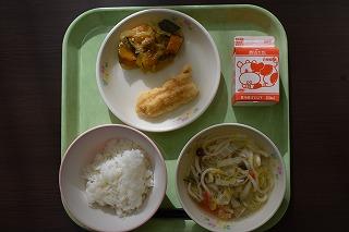 今日のメニューは、ごはん、かき揚げ、酢の物、車麩の卵とじでした。調理師、調理員の皆さん、栄養職員の山田先生、今週も美味しくて栄養満点の給食をありがとうございました。来週もよろしくお願いします。