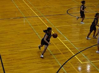 初戦は、辰口中学校との対戦でした。立ちあがりから追いかける展開も要所で3ポイントシュートなども決まり、2クオーター終了時点で16-22と6点差で踏ん張りました。後半の第3クオーター、相手の激しいプレッシャーに、ドリブルカット、パスカットされる場面が増え、ゴール下のリバウンドもなかなかものにできず、徐々に点差を広げられてしまいました。コートに立つ1、2年生それぞれが懸命のプレーを見せましたが、34-54で敗戦となりました。