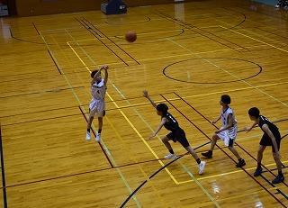 初戦は光野中学校との対戦。第1クォーターから順調に得点を積み重ね、ほぼ全員がコートに立ち躍動、61ー16で勝利しました。
